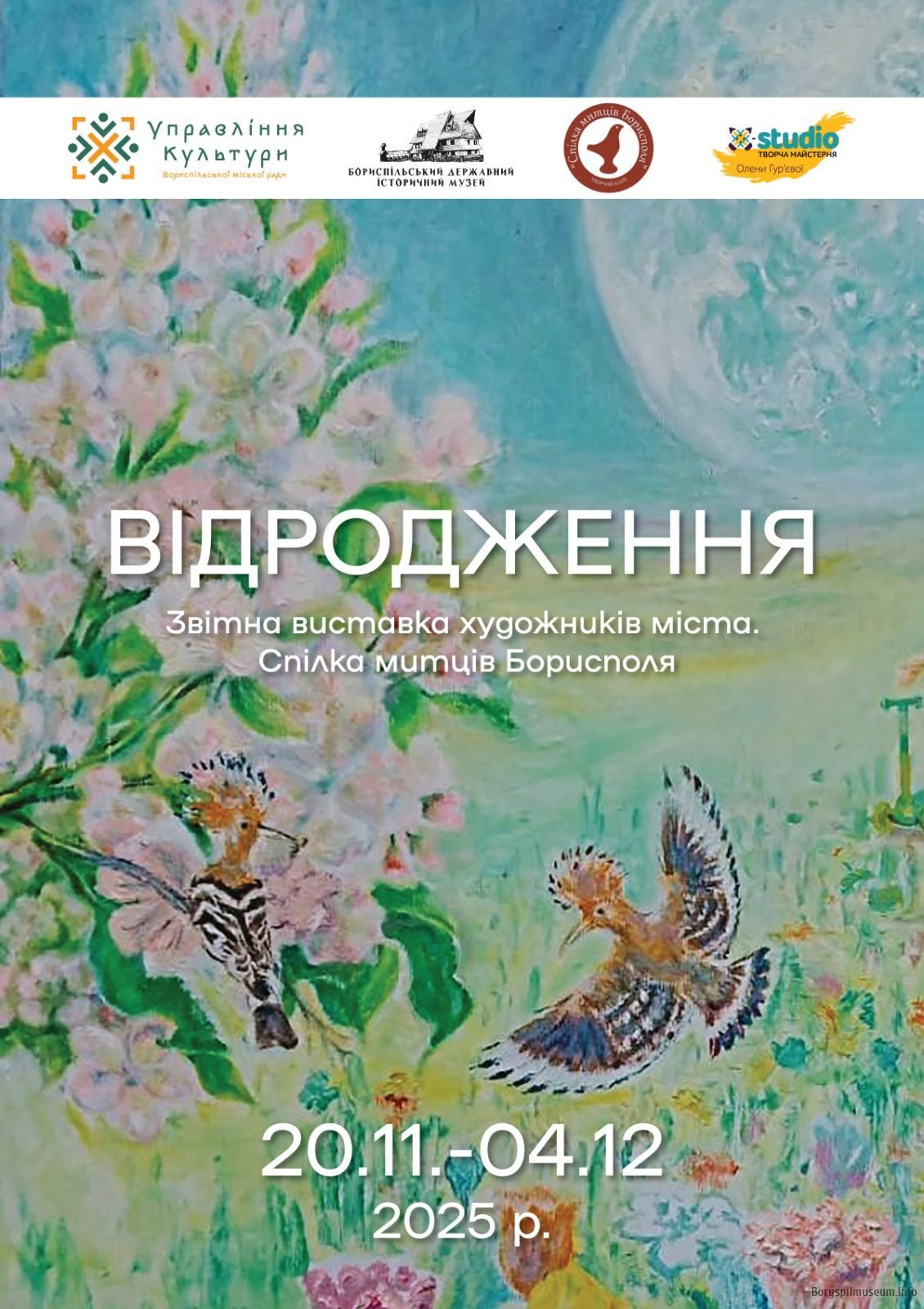 З 20 листопада. Запрошуємо на виставку картин від художників Спілки митців Борисполя. Ця експозиція — не лише знайомство з творчістю митців, а й нагода відчути живу енергію мистецтва, яка надихає, заспокоює та наповнює.